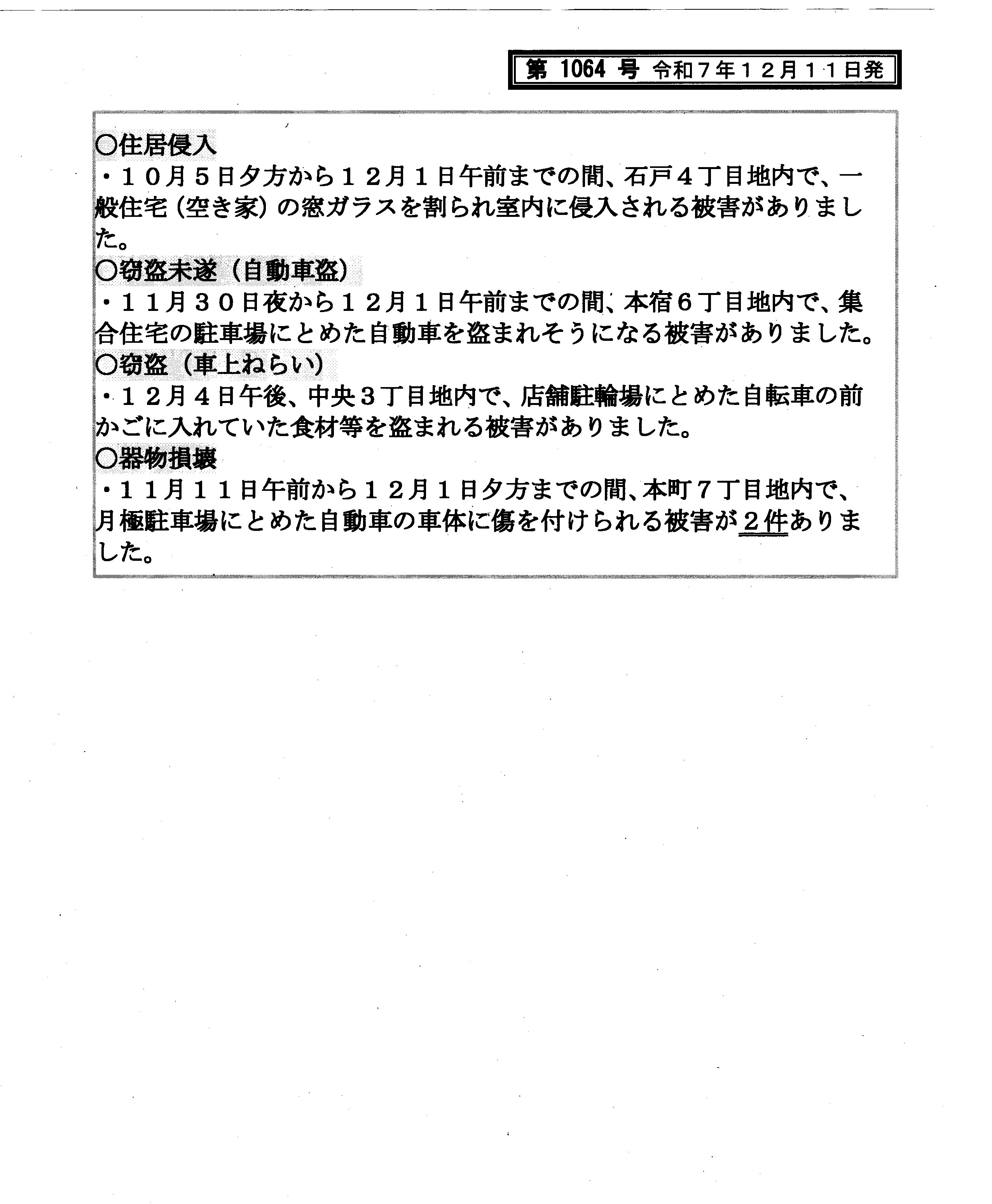 週刊警戒情報1060号~1064号